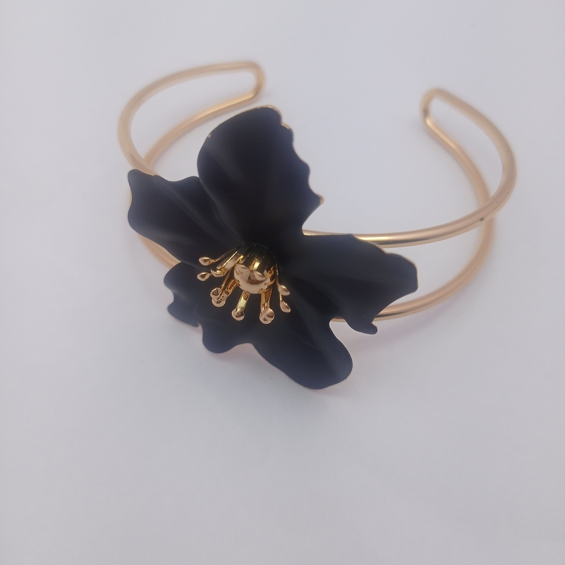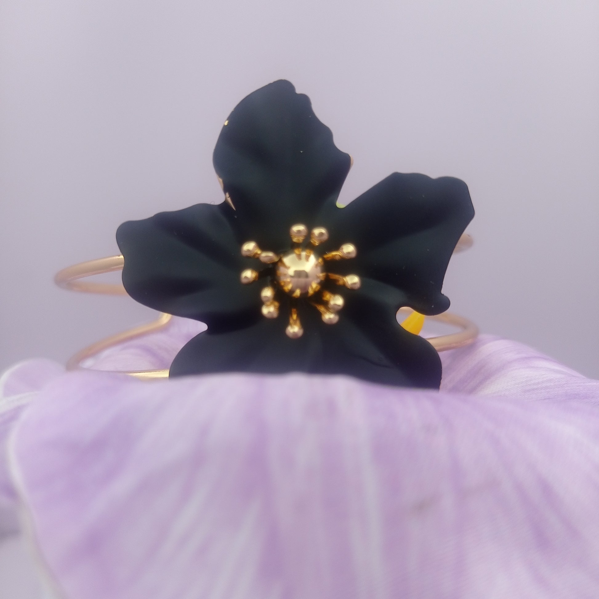 Black Daisy Bangle – Black Daisy Flower Gold-Plated Cuff Bangle