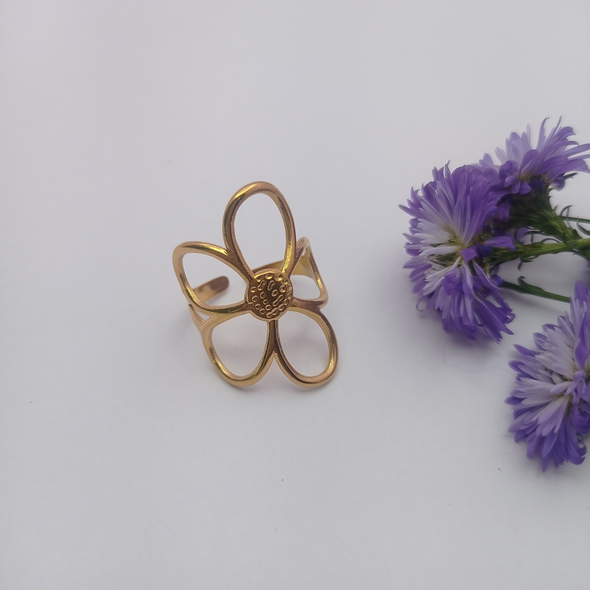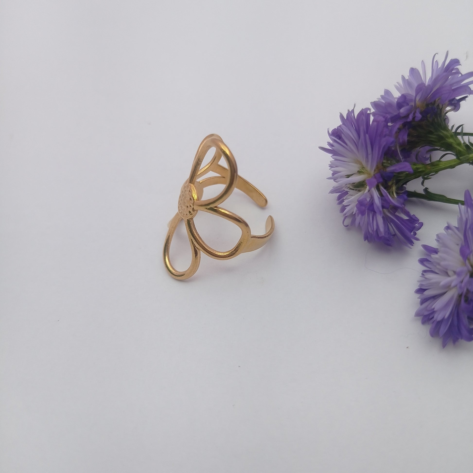 A delicate floral-inspired adjustable ring crafted with a gold-plated finish. Soft, feminine, and perfect for adding a touch of charm to your everyday look.
