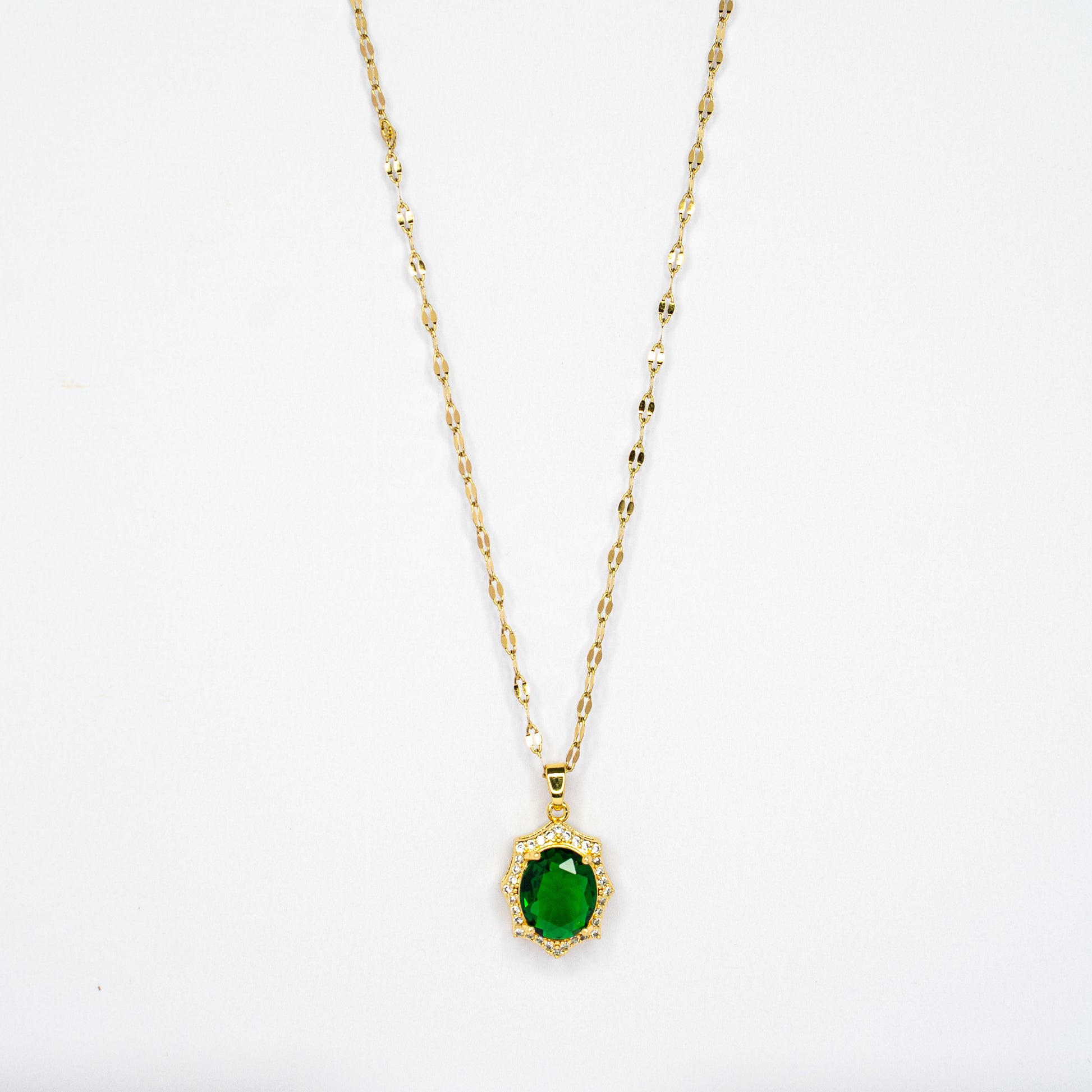Elegant and refined, the Green Oval Drop Pendant Chain showcases a polished green stone in a classic oval drop shape. Gold-plated to perfection, this piece adds a graceful pop of color and sophistication to any outfit. A timeless design made to impress — whether at brunch or an evening affair.