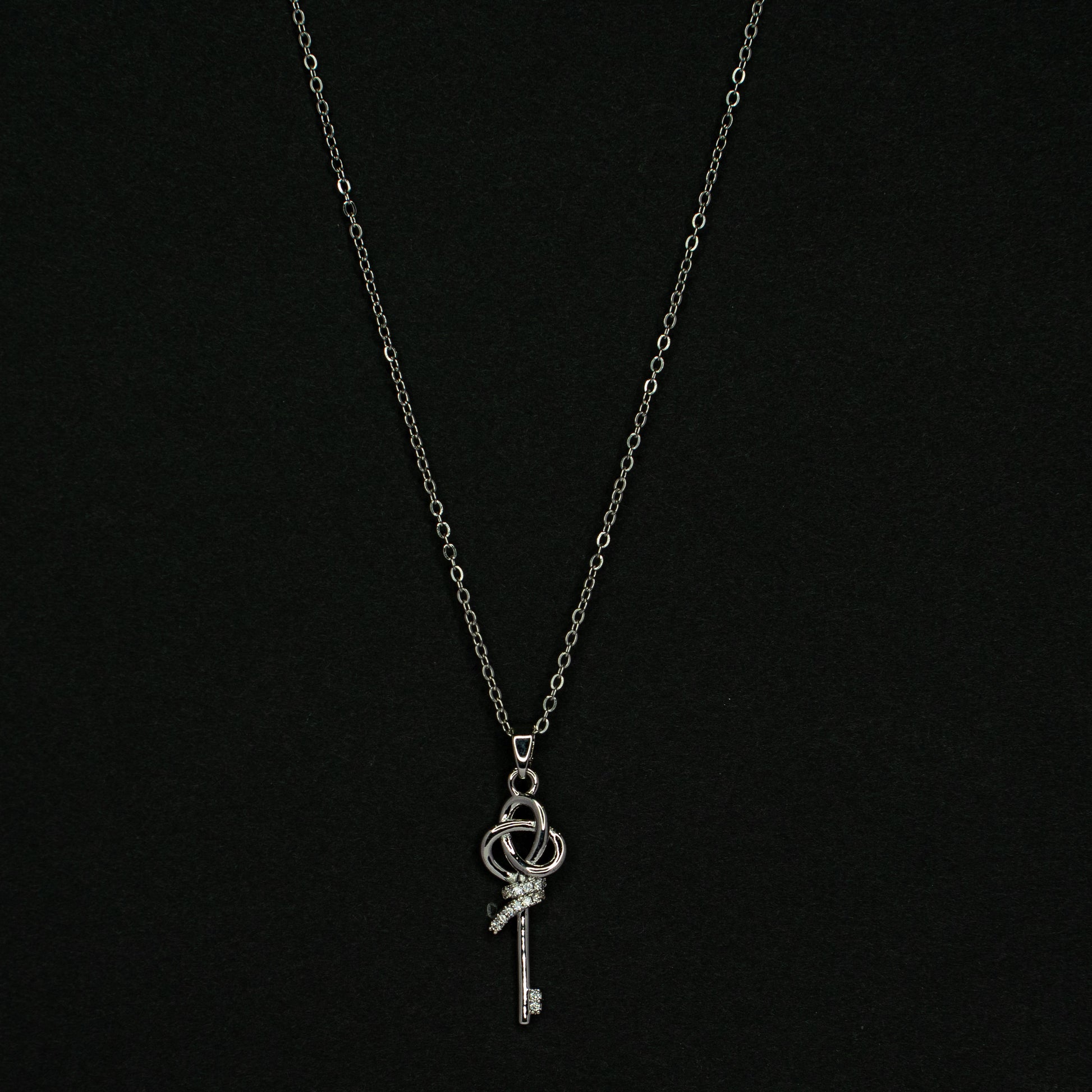 This silver-toned key pendant whispers elegance and clarity. The perfect piece to symbolize strength and hidden possibilities. Subtle stones add sparkle to the story.