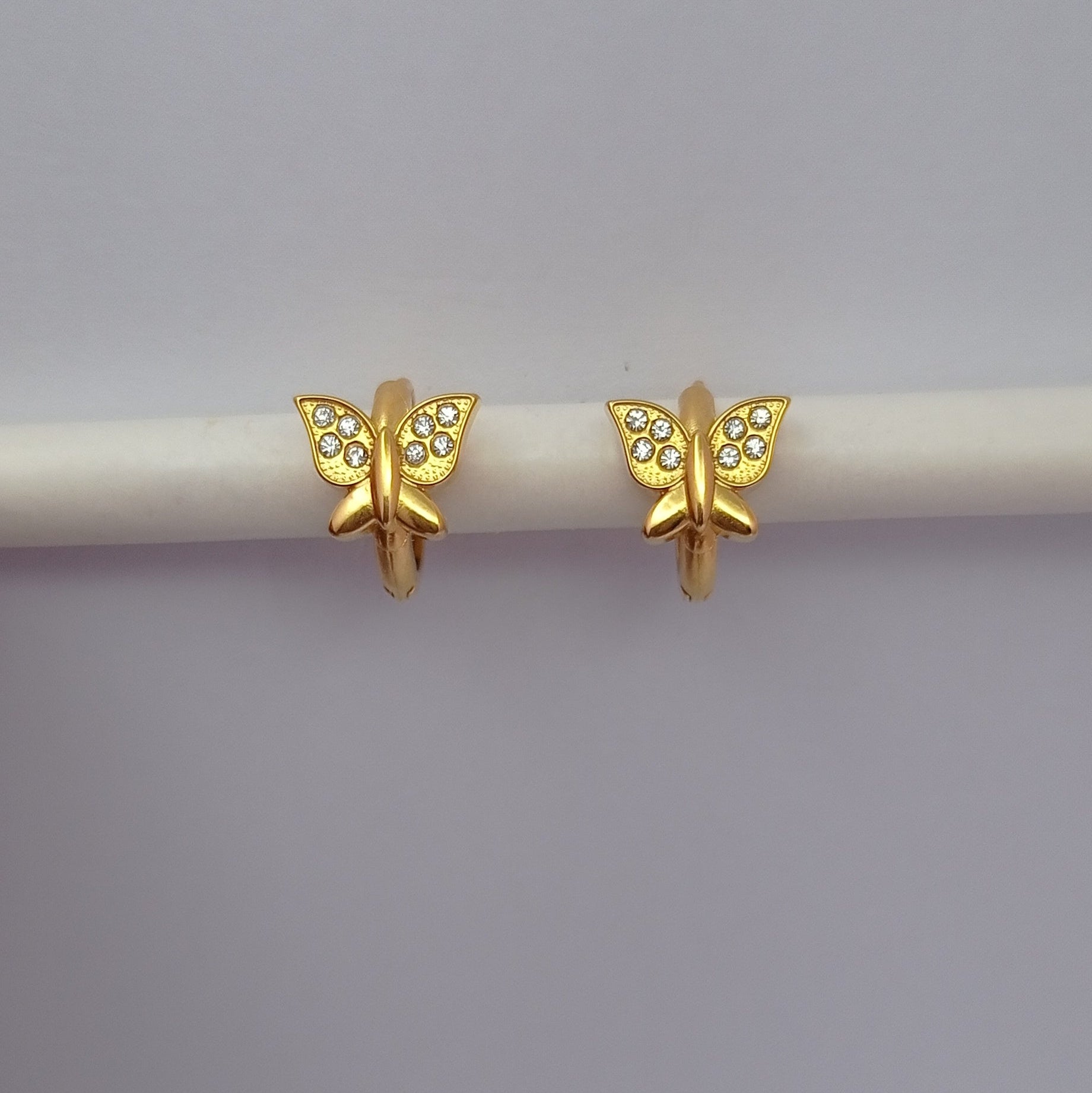 Delicate small butterflies adorn these gold-plated hoop earrings, bringing a subtle touch of whimsy and charm. Perfect for everyday wear or layering with other hoops.