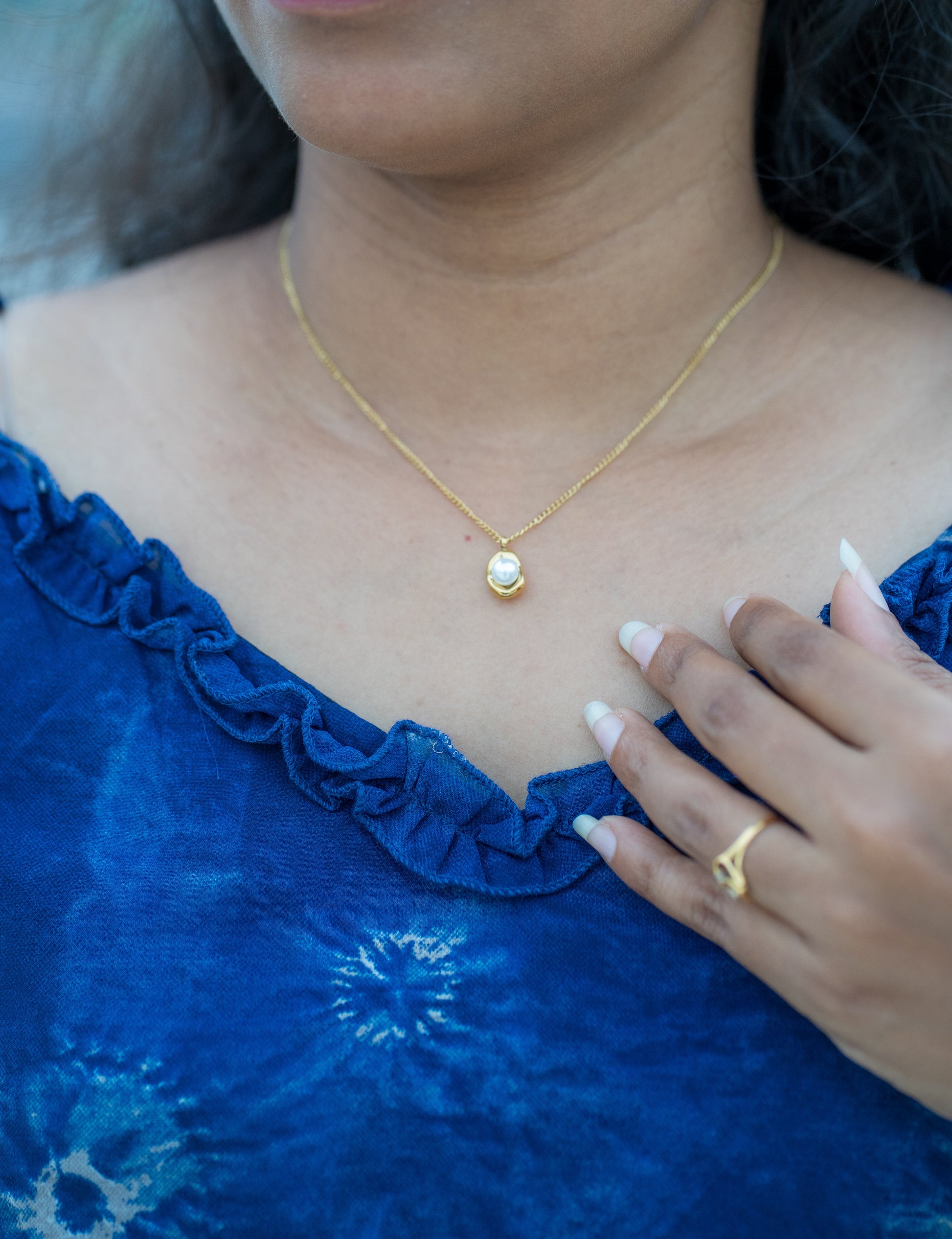 Classic with a bold twist. A luminous pearl takes center stage in this necklace—refined and confident.
