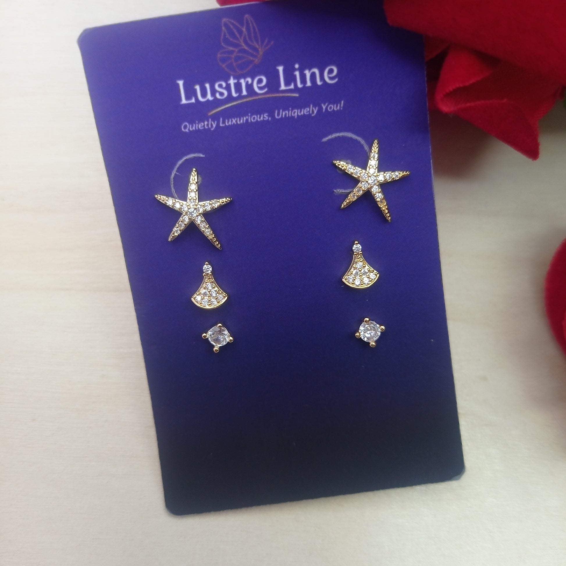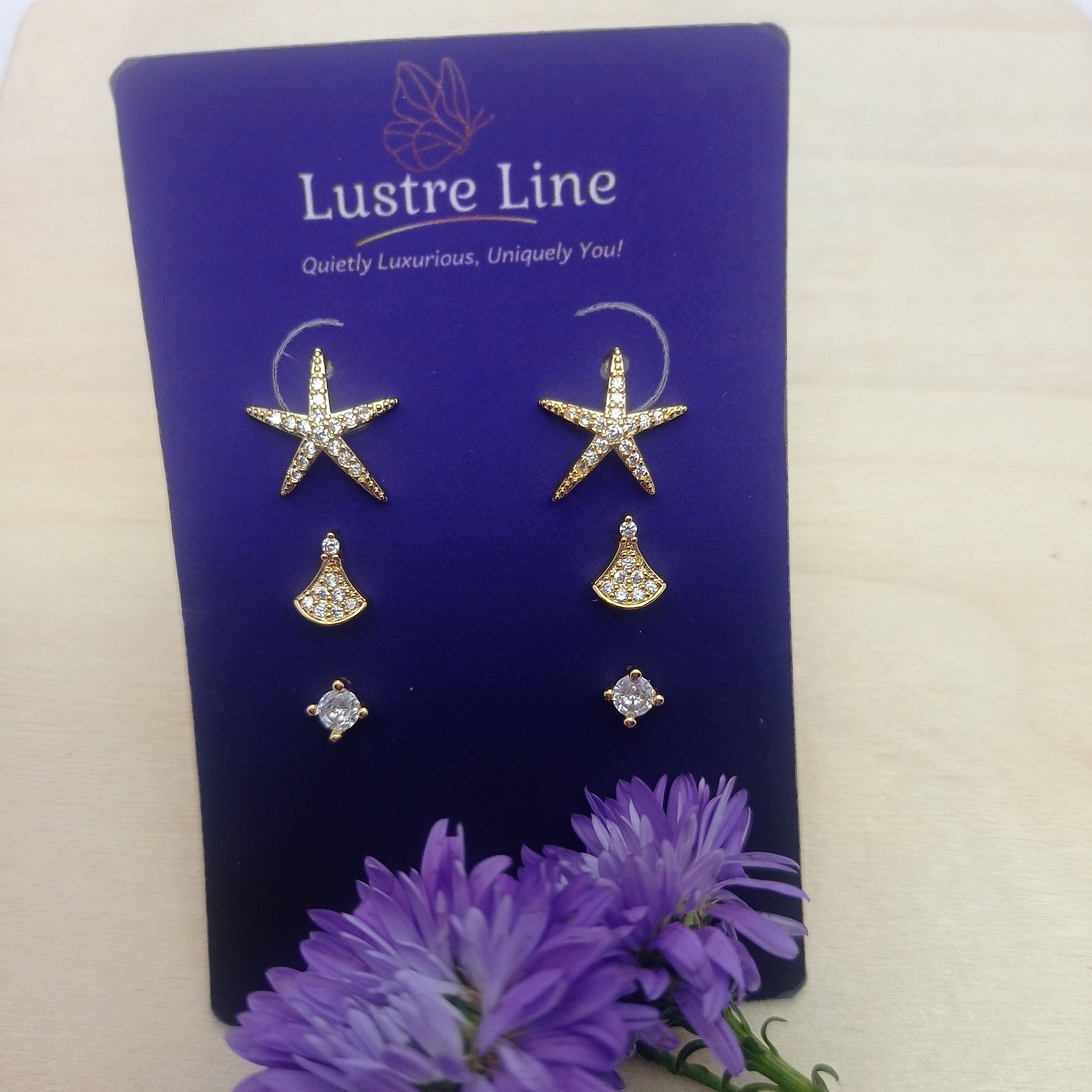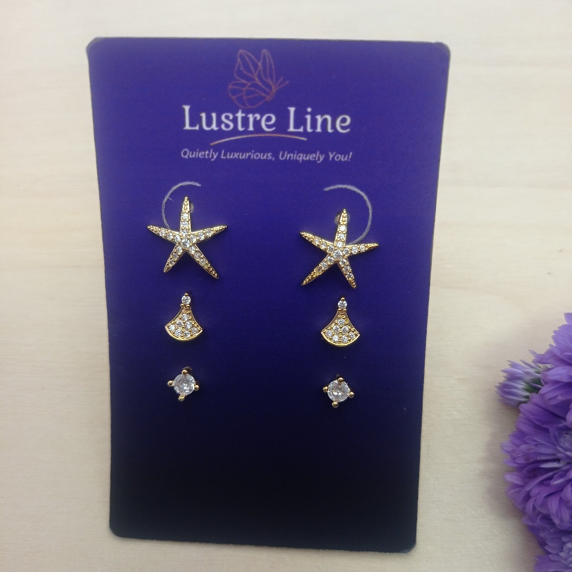 A refined gold stacker set featuring white stone accents and a celestial star touch. Crafted for those who love subtle sparkle, this piece elevates any look with premium Lustre Line refinement.
